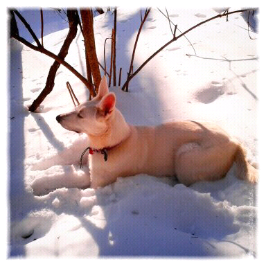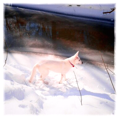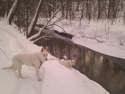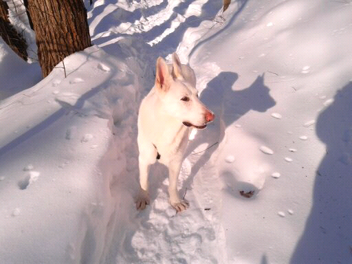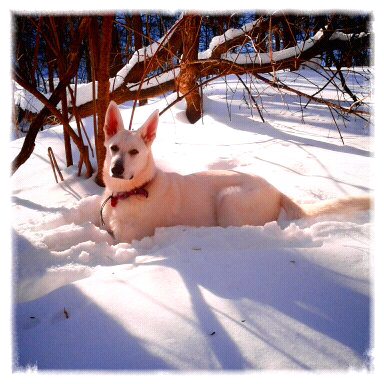 Snow dogs. Cabal is on the left, Lola over on the right.