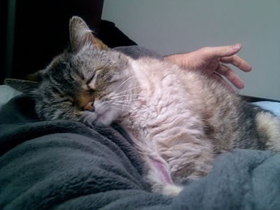 When I woke up this morning, she was in her cat bed on the floor. I cleaned up the vomit-foam that had happened while I'd slept. Now I'm off t...