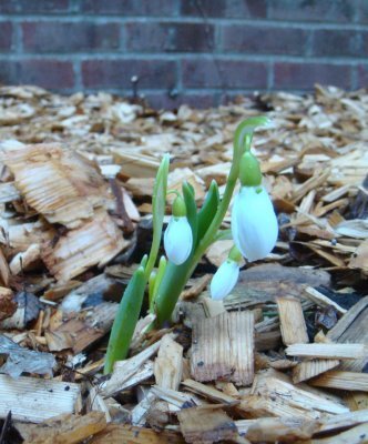 I'm home. It's raining, as it's been raining for two days, which is a good thing as it's taking care of the remaining piles of snow or the shadowy places where paths are still covered with ice. Looked out of the window yesterday and realised the first snowdrop was out, which made me ridiculously, momentarily happy. Snowdrops were the first flowers I remember being able to identify - I learned about them age 3 or 4 from a book with a title like "A story a week" - and the