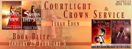 AUTHOR BIOTerah Edun's next YA Fantasy novel, BLADES OF MAGIC - Crown Service Book #1 (set in the Algardis Universe), was released on March 31, 2014. Book Five of Courtlight, SWORN TO DEFIANCE, was released in April 2014.