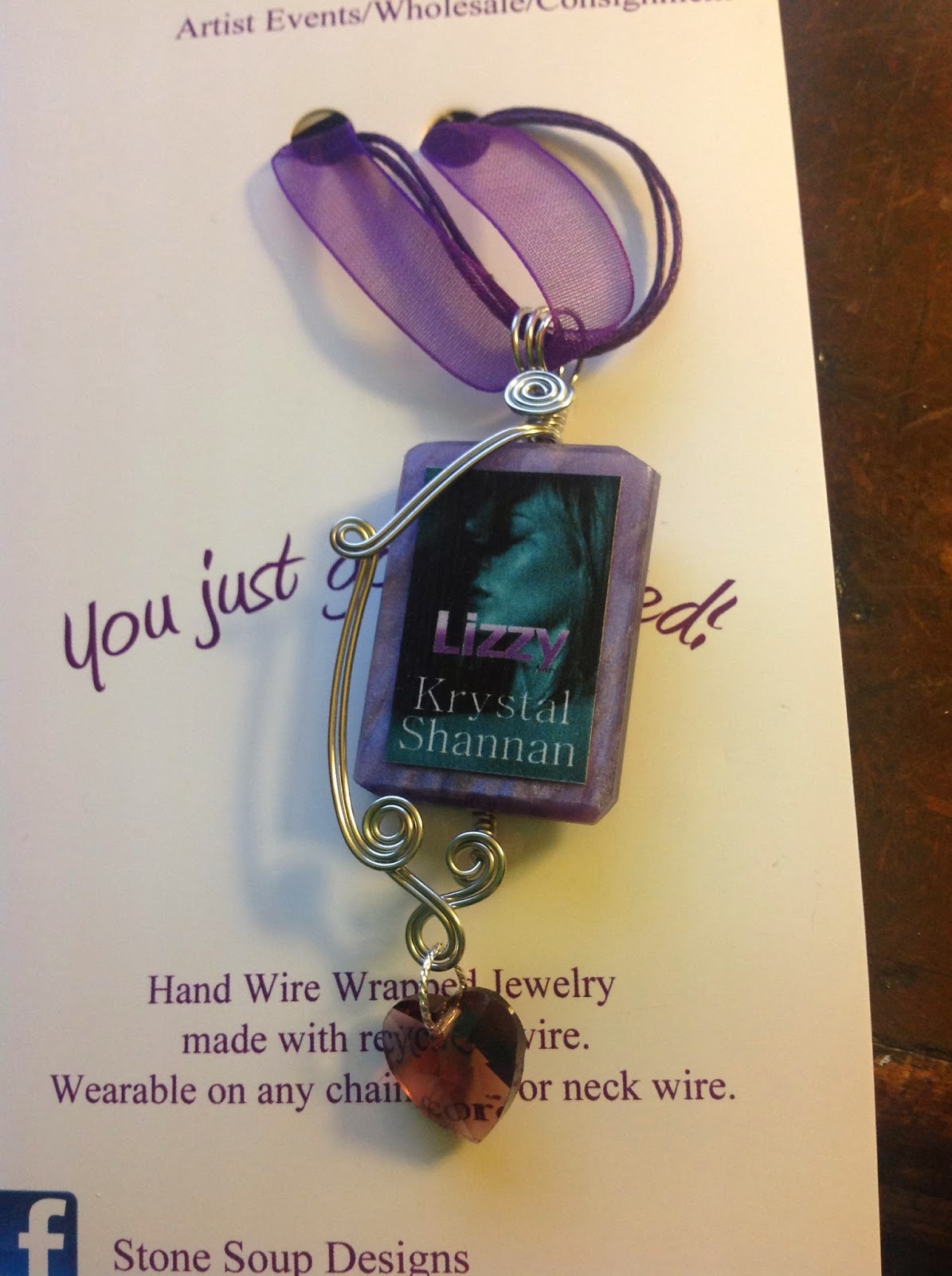Krystal will be awarding a necklace pendant depicting the cover of Lizzy to a randomly drawn commenter during the tour.