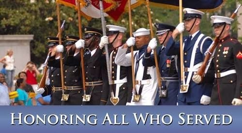 The Veterans Day National Ceremony is held each year on November 11th at Arlington National Cemetery . The ceremony commences precisely at 11:00 a.m. with a wreath laying at the Tomb of the Unknowns and continues inside the Memorial Amphitheater with a parade of colors by veterans' organizations and remarks from dignitaries. The ceremony is intended to honor and thank all who served in the United States Armed Forces.