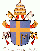 symbols of the papacy: the crossed keys and tiara, the M in the corner