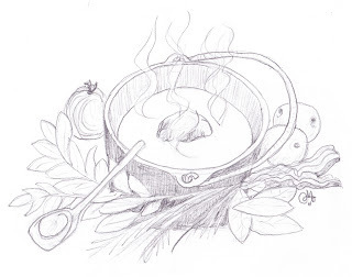 Meat is scarce in the fairy tale, and fatty meat was scarce during ice age winters. Without some fat in the diet a person can starve to death, even with an abundance of other foods. The only place fat could be obtained in deep prehistoric winters was from the long bones of a female horse. The bones were added to the broth of the stone soup, cooking out the life giving fats, just as we cook chicken soup today.