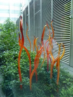 I had the privilege recently to go see the Dale Chihuly glass exhibit at the Museum of Fine Arts. It was absolutely spectacular. He has had exhibits all over the world to great acclaim. I have seen quite a few of his pieces in different venues, but this is the first time I've seen so many all together. The pictures I took just don't do the pieces justice, but I wanted to share anyway. Enjoy!!