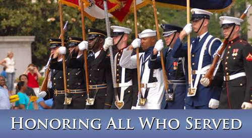 The Veterans Day National Ceremony is held each year on November 11th at Arlington National Cemetery. The ceremony commences precisely at 11:00 a.m. with a wreath laying at the Tomb of the Unknowns and continues inside the Memorial Amphitheater with a parade of colors by veterans' organizations and remarks from dignitaries. The ceremony is intended to honor and thank all who served in the United States Armed Forces.