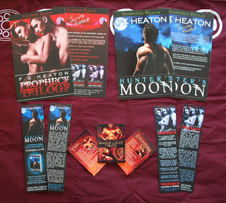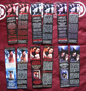 I now have around 370 each of bookmarks for Heart of Darkness (vampire romance book), Love Immortal (vampire romance book), Prophecy: Child of Light (vampire romance book), Prophecy: Caelestis and Aurorea (vampire romance book), Prophecy: Dark Moon Rising (vampire romance book) and Her Guardian Angel (angel romance book). Yes, you read that right. I have created a set of bookmarks for the Prophecy Trilogy. I guess that sort of makes them collectible!