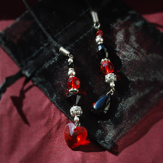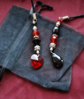 I write vampire romances and angel romances, so I decided to have a sort of theme. I have four giveaways, so it was perfect for having a vampire heroine and vampire hero colour scheme, and an angel heroine and angel hero colour scheme. Here are some pictures of my adventure in creating beaded bookmark thongs...