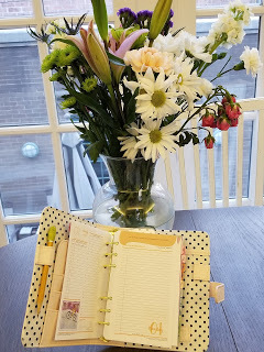My new planner and flowers to brighten up the day1. Time management counts--no matter what your profession or goalsI'm always looking for ways to increase productivity. Sometimes my to do list is so long that I don't keep to my tried and true routine and then things fall through the cracks. (Thank god for Gayle Lynds. Don't know what I'd do without her. She usually plans far ahead and then gives me a kindly nudge,"What about that upcoming panel in July?" I'll bet she has some excellent tips).