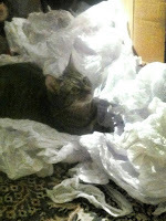 Kondo suggests attacking clothes first and leave photos for last because they are the hardest to cull. So, true rebel that I am, I started with photos. Mostly because I stumbled over boxes of them while heading to get the Christmas ornaments out of the basement closet. The photo boxes went flying as did the photos. Four hours and two garbage bags later my husband came home and stared in astonishment as he looked at the throw away pile. I explained that we're not the greatest of photographers and all those "2 for 1" specials over the years made for a lot of boring photos and duplicates. Lovely man that he is, he immediately made a cup of coffee for me and dove in to help. We tossed them that day because our youngest is very sentimental and if she had seen the bags would have been horrified that we threw away those duplicate blurry photos of the cat. (See one of the hundreds that we kept below).
