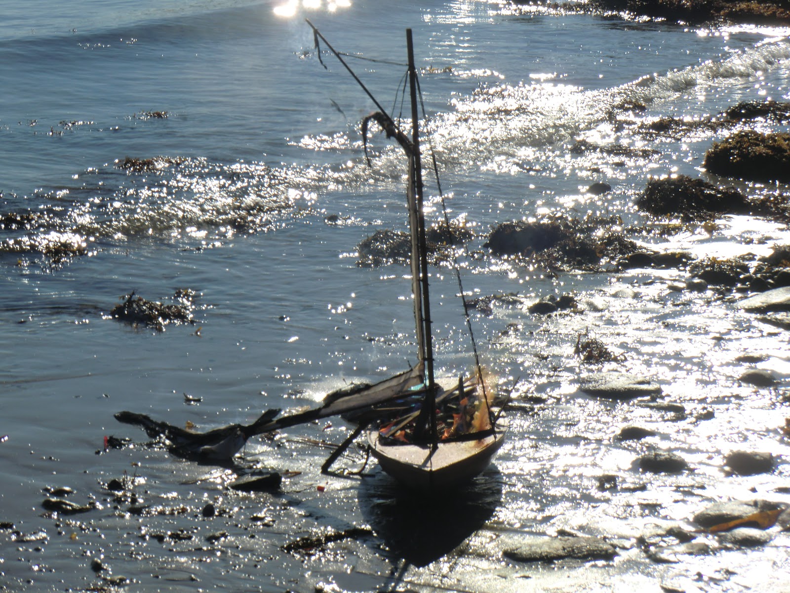 It only stood to reason that the Viking funeral would have its moment, too. My brother the sea captain, had built a beautiful replica of the dory my dad had sailed as a teen. My father’s name was Harry deLorimier McKinlay, Jr., so after drinking some Harry’s beer, some deLorimier wine and some McKinlay whiskey, a small contingent of us launched the replica off the beach. My other brother shoved a roman candle in my hand and told me to point it at the boat, which the boys had doused in gasoline. It was then we discovered the captain had forgotten to put any ballast in the keel. The boat listed, spilled some of dad’s ashes into the water and turned back to shore. Long story short, we burned the boat on the beach.