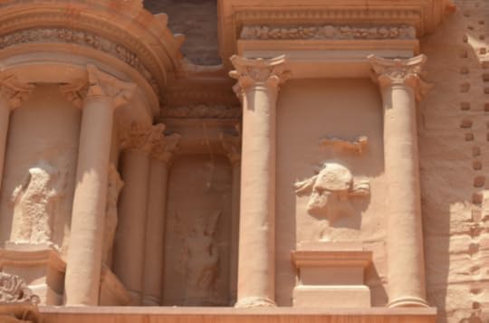 As our horse-drawn carriage navigated through the Siq, a narrow gorge that leads visitors into Petra, our guide made us close our eyes. When we opened them, his first words to us were, “BEHOLD, the history awaiting your eyes.” I’ve circled the globe, but this view, even from a distance, of Al Khazna, the Treasury, is spectacular. Crowned by a funerary urn, local legend has it that a pharaoh’s treasure sits inside of its belly. I’d watched the Raiders movie featuring the fearless Indiana Jones, but to be up close and personal was incredible. Almost 40 meters high and adorned with Corinthian capitals, friezes, and figures, I closed my eyes once more and stepped into Indiana’s shoes to take his place on my literary adventure.