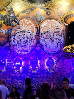 El Catrin Restaurant The Distillery District TorontoAfter the panel local friends took me to the Distillery District in Toronto and it's another highlight! Picture old brick warehouses turned into art galleries and stores and restaurants. Families strolled and the restaurants were lively. We went to Elcatrin, a wonderful Mexican restaurant with the coolest, almost surreal decor that I have ever seen. I snapped this picture of the far wall. The food was excellent and if you head to Toronto I highly recommend this restaurant.I loved Toronto and Bouchercon is always memorable. Already looking forward to St. Petersburg Florida next year!
