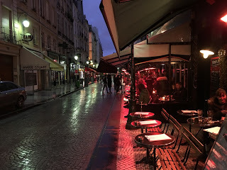 Postscript: May 18. I'm in Paris in an absolutely charming apartment, with a comfortable bed and a view of the Paris streets and rooftops. We have been exploring the city non-stop, and I'm walking between 5 and 7 miles a day, so although I'm eating enough French pastries and French cooking to otherwise put on the pounds, my weight has been stable. We've had wonderful experiences, and we've managed to hold limited conversations in French. Yesterday, I holed up with my computer in a little cafe close to the Picasso museum, sipping espresso and nibbling on a heavenly piece of lemon tart dusted with white powdered sugar. I finished a chapter while jazz music played. Jim will be taking a cooking class at the Cordon Bleu today while I ensconce myself in a cafe close to the apartment and hope for another good writing day. C'est magnifique.