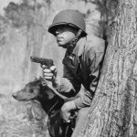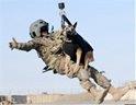 won't bark when confronted with small arms fire or exploding shells, but remain completely silent so they don't reveal their troop's position to the enemy. These terrific dogs learn to perform sentry duty, sniff out mines and bombs, and even jump in tandem with their Air Force handlers.