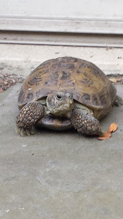Mom insisted that the kitten could only stay until we found her a home or sent her to the shelter. That lasted about one day. After a week my mom fell in love with “the Kitty.” Princess, the most wonderful dog in the world, tolerated her well enough, and the rest of us loved her. Kitty stayed for nineteen years until she died of old age in my Chicago townhouse.My son wanted a turtle and the next pet in the house was Will. He’s a desert tortoise and just about the perfect pet. He lives in our backyard all summer and hibernates in a terrarium in our cool and dark crawlspace all winter. Will comes when called. Well, I suppose a big part of that is that he knows I call him when I bring his romaine lettuce outside. He lumbers out and stops in front of me, his neck craning upward. He knows his name, I’m sure, but I imagine he calls me “She Who Brings The Lettuce.”