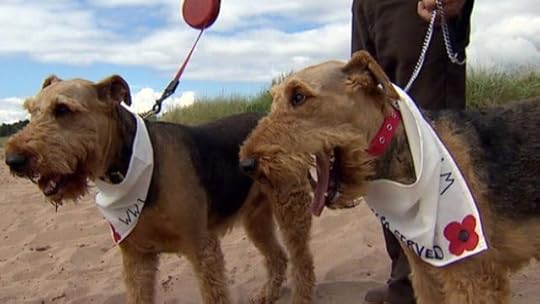 By the end of the war, the BBC estimates that twenty thousand dogs were serving at the Front. During the 2014 First World War Centenary, as it was called in the UK, Airedales were honored with poppy-decorated neckerchiefs that read: We Also Served.