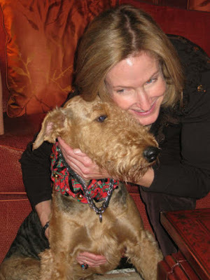 Nessa and me, one ChristmasNo, I hadn't known. And I shivered at her words. Ever since, I have been convinced that the bond between dog and human can come down through the generations. Airedales are in my blood. I've shared my life successively with five, at this point, each of them stretched luxuriously at my feet while I have typed away at novels. They are my Official Companions of the Writing Room.