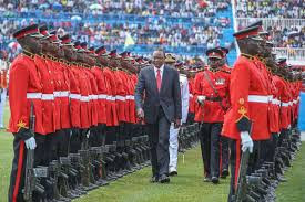 It is usually celebrated with an event at Nyayo Stadium in Nairobi. A military parade takes place with troops wearing colorful uniforms from the red, black, and green on the Kenyan flag. The honor guard is presented, the president of Kenya shares a speech that is similar to the U.S. State of the Union Address, and then motorcades and a skydiving display close the celebrations.