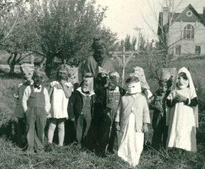 On the day of Halloween, we weren’t allowed to wear costumes to school where the serious business of education took place. But the moment the last bell rang, we ran home and dressed up as witches and goblins, Supermen and princesses, ate early dinners, and sat on our front porches to wait until the sun went down. No, we didn’t do homework first — no one had homework until junior high school. As the time passed toward sundown, and the shadows lengthened, we children squirmed with excitement. Halloween!