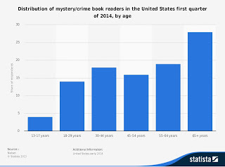 Another study I found does support the common allegation that women buy more books than men. In 2010, Sisters in Crime collaborated with Bowker's PubTrack Book Consumer research service to gather data on mystery readers. They found that 64% of the mystery readers were women, 35% were men. 47% were over the age of 60. The study also revealed that readers under 40 look for dark, suspenseful stories and don't distinguish mysteries as different from other genres, while readers over 60 are more loyal to authors or characters.