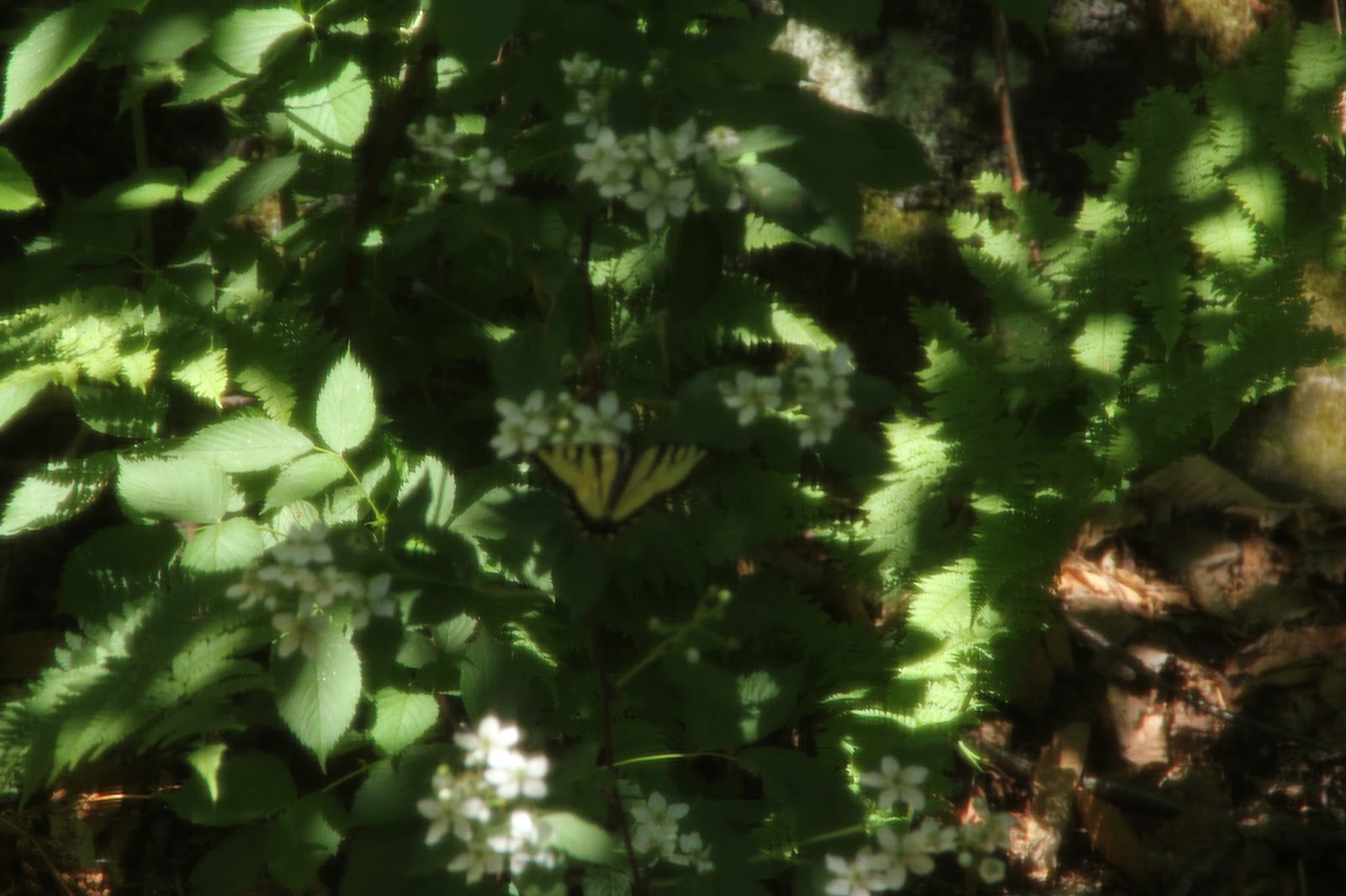 The butterfly is in the middle of the bush. Look closely.I should find it easy to write this new novel. I love my characters, and they are in danger. Terrorists have smuggled weaponized uranium into the United States, and I’m building to the ultimate confrontation. But still it’s summer. In Vermont, summers are sweet – and short.