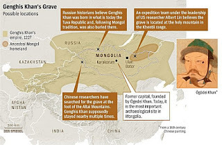 The Secret Grave of Genghis KhanWhen the fabled warrior died in 1227, his body was returned to Mongolia, probably close to his birthplace near the Onon River. According to legend, the funeral escort killed anyone who saw the body being transported, and when the tomb was finished, the slaves who built it were murdered, too. Nothing was left to mark the grave, even though Genghis Khan had founded the Mongol Empire and conquered most of Eurasia. For centuries the hunt for his tomb has attracted those fascinated by his remarkable life and accomplishments. One was Maury Kravitz, the famous Wall Street commodities trader, who financed and led four excursions into Mongolia. Still, the Great Khan’s final resting place is unlikely to be found because, if legend is to be believed, the soldiers who murdered everyone who might know about the tomb also killed one another, the last man taking his own life.
