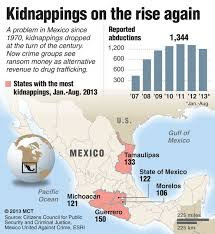 Mexico has become a booming industry for kidnapping. The drug wars have a lot to do with the rising incidents. So do corrupt police officers who are sometimes the brains behind these kidnaps. In the past, the crime tended to target the rich. Now it has become more egalitarian. Victims these days are often shopkeepers, taxi drivers, service employees, parking attendants and taco vendors who work in cash or in Mexico's informal economy. Targets also tend to be young--students with parents willing to pay for the return of their loved ones. Ransoms can be as low as $500, quick transactions for kidnappers to make a buck.