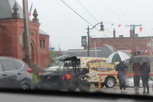 Saturday night and most of Sunday brought rain and low scudding clouds, but the weather didn’t deter the good people of Eastport from having a 4th of July parade. The streets were lined with wet, but determined citizens, waving and hooting at the marchers, fire trucks, police cars, Kora Karts and floats. Beth and I were amazed at the amount of candy still lying on the ground after the parade passed. I wondered how many creatures in the harbor got a sugar high from the runoff.