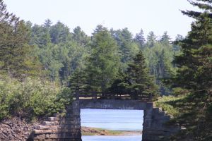 Tuesday was spent exploring the Devil’s Head Conservation area off Route One south of Calais. There are several trails to hike there as well as steps down to the edge of the river. The small beach affords a nice view of St. Croix Island downstream as well as what appears to be a quarrying operation on the Canadian side of the river. We stopped several times to photograph various mushrooms. While looking for a place to eat in Calais, we met a very pleasant gentleman. He was a Korean War veteran, age 89 who had been active in establishing a drop in center for veterans. He gave us a suggestion for where to eat as well as directions to the walking trail that follows the western shore of the river, passing under the roadway leading to the border crossing, a spot, like the International Bridge in Lubec that looks more like a set for a zombie flick thanks to the pandemic.