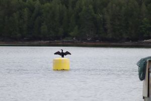 Wednesday we drove to Cobscook Bay State Park for a picnic and a couple hikes. The trail leading to a scenic lookout was deceptive. At first it took us through the woods where we spent as much time avoiding exposed roots as anything, but then we made a sharp left turn and found ourselves scrambling up a steep jumble of broken granite. Not exactly the best terrain for a couple wobbly folks like us, but the view was worth it and we managed to retrace our route and then follow the Burnt Cove trail back to the main gravel drive. Once again, we took plenty of photos. From there, we drove along the access road to the nearby boat launching area that’s currently being repaved. Along with great photos of fishing vessels, the stop allowed us to snap pictures of a line of cormorants on a floating dock.