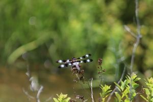 Thursday, we went south to Dennysville and found an unexplored section of the Sunrise Trail. We were about to turn back when it looked like the area ahead of us was opening up. Our decision to keep going was rewarded when we started walking through a large marsh. In addition to a beaver dam, the area afforded unlimited photo opportunities of kingfishers, tadpoles of all sizes, more bullfrogs that we’ve seen in years, and huge dragonflies. On the way back to camp, we explored several more roads winding past the ocean.