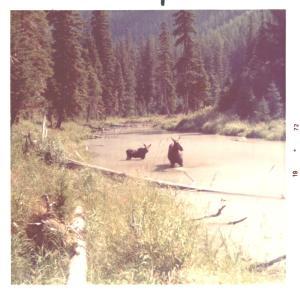 Cow moose with young