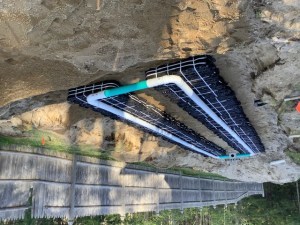 A replacement septic system leachfield soon to be forever covered with dirt. South Casco, Maine.