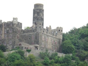 Knights’ entranceAfterward, we cruised on upriver. Seen from a cruise ship’s deck, the Middle Rhine seems like a journey through history. In rapid succession, we gawped at a pageant of vineyards, walled towns, and hills topped with castles. The ship’s program director announced their names, along with tidbits of history. Even though I still have the map and my photos, I cannot say for sure which castle is which.
