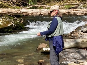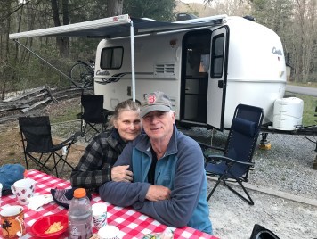 My husband and I have been on the road for almost a month, exploring creeks for wild trout (very smart fish), and staying in North Carolina national park and forest service campsites. I’m used to Maine camping in remote places, so sharing a campground with other travelers (sometimes over forty of them in tents, small campers, and very large generator-chugging RV’s) has been a new experience.