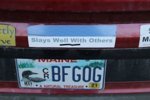 I gave into a COVID-19 isolation impulse and had five of these bumper stickers made. The first day it was on my car, some woman who thought I was going too slow, tried to smooch my bumper. As soon as she saw this, she backed off and stayed far away until turning.