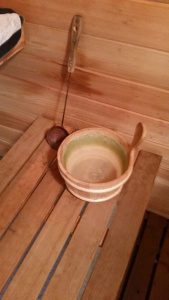 When we added a porch to our house in Maine a few years after our adventures in Finland we seized the chance to install a sauna at the end of the porch, and it became a critical part of our winter routine. After an afternoon of snowshoeing we start the electric unit (traditionalists prefer a wood-fired one, but that takes too long, and both our Finnish saunas were electric), strip off our clothes, and enter the warm and steamy space for a relaxing 40 minutes or so. Steam is important. As a going-away present our students in Finland had presented us with an authentic sauna dipper, and we use it liberally to create the steamy environment that is critical to a successful sauna experience.