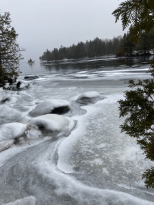 Sandra Neily: adding Moosehead Lake freeze up, cove at dawn, and well, the dog says it all.