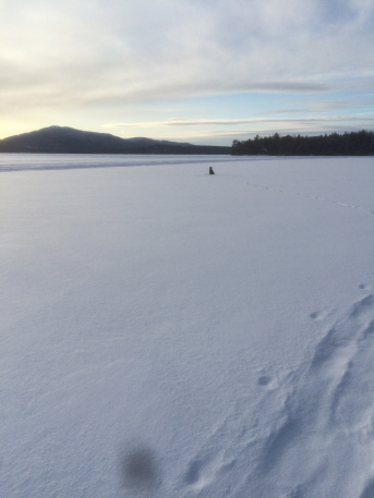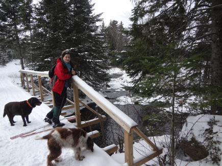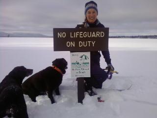 With Sally: Lily Bay State Park with miles and miles of the sound of snow under our skis.