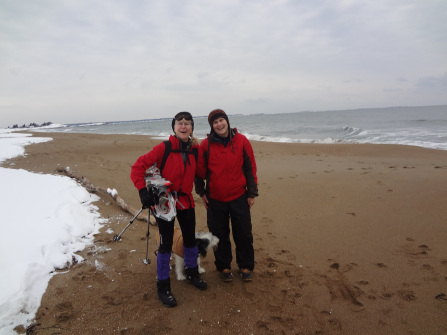 With Fran, a snowshoe out and a walk back on the beach: Reid State Park. And it’s open all year!