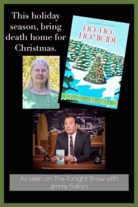 I loved writing this one because, at the time, my husband and I were operating a small mom-and-pop Christmas tree farm, open for sales from the day after Thanksgiving until Christmas Eve. That experience gave me lots of details I knew about first hand, although the operation Liss encounters is a much more commercial one than we ever had. Our netter—used to put netting around a tree to make it easier to transport—became a key part of the story. This novel isn’t as lighthearted as A Wee Christmas Homicide, but it has its moments. I was also able to use a couple of plot points that came straight from local headlines earlier that year—the discovery of a body in a freezer in a storage unit and some illegal activities connected to a dance studio. I won’t go into detail for those who haven’t Ho-Ho-Homicide, but let’s just say that when Jimmy Fallon held up a copy of the paperback reprint of the book on The Tonight Show and made a joke about the title, he wasn’t as far off as he probably thought he was. I doubt he read the book, but he gave me the best pull-quote an author could hope to have: “It has two things everyone likes, Christmas and murder.”