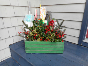 7. Decorate. The holidays, remember? If you don’t celebrate Christmas or Hanukkah, decorate for winter. Create your own ornaments or greenery at your door. I have no talent for decoration or crafts, but my winter box here is passable and lasts all winter—with watering. Here’s how. Purchase a florist green foam block. Soak it before you start adding greenery. Cut small fir and pine branches and stick them in the foam. I purchased holly and some artificial berry branches and added those for color. Later in January, when the winterberries appeared, I added those. No one but us will see our Christmas tree or candles on the mantle this year, but even the act of opening the boxes and putting every cherished item in its traditional place brightens my mood. And the lights and bright colors will continue to make me/us happy.