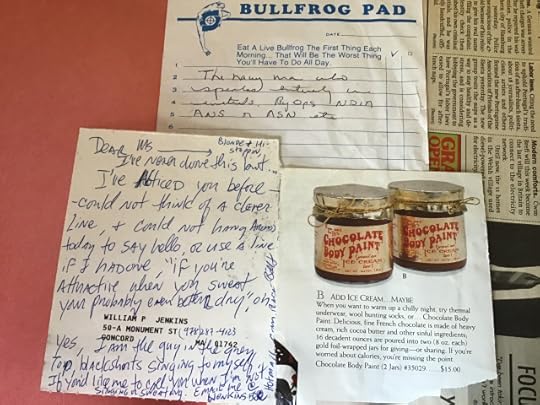 I don’t know what I will do with all these discoveries, nor with a file on articles about writing from the late Globe columnist Donald Murray, who sent me my very first fan letter. I do know that I now have a lot to think about. Rewrite an early book? Read that fan mail and see what inspired people to write? Take some advice from Don Murray? Learn more about the history of my mother’s side of the family? I have learned this from prowling around my office and I pass it along to you: don’t throw those little pieces of paper away. Use the newspaper for story ideas. Listen to conversations around you and pay attention to the people you see. You may think you have nothing to write about but there may be the seeds of a novel lurking there.