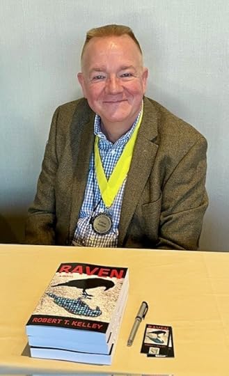 Rob Kelley at the book signing table with his just-released novel, RAVEN. The medal on the yellow ribbon is the badge of accomplishment given to each year’s debut authors.