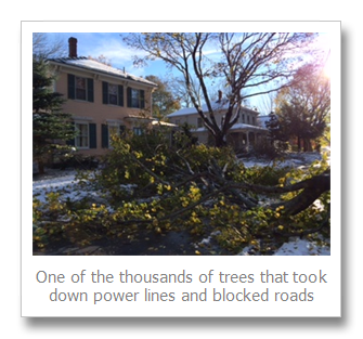 “I feel like a pioneer woman,” said one of my friends yesterday. She’d been without power for three days but could still manage a smile. Luckily for Nancy and her husband Marlowe, the trees they lost to the storm fell away from their Colonial, but others here were not so fortunate. The town manager of Rockport narrowly escaped injury when a huge tree smashed through his roof, stopping just inches from his shoulder. He told me that just before that happened, he’d been driving home when another tree just missed his car.