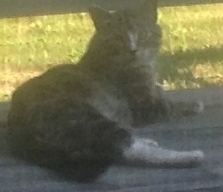 OIS takes a look around. The other two cats appear. Apparently, they missed the whole thing. There are no puffed up tails in sight. Since they’re Maine Coon cats, their tails really puff up when they are confronted by a strange cat or a dog, a wild turkey, or a deer, moose, or bear, even if it is on the far side of the sliding glass door to the back deck. With squirrels, chipmunks, and birds, not so much.