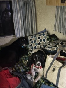 Of course the dogs get the bed when we need the camper’s floor space.