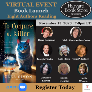 This coming Thursday we’re launching Clea Simon’s new book because she’s having surgery. Eight authors on Zoom. Come and see how we do it: