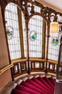We made one more hotel move in Stockholm. This one was situated right on the water, closer to Sodermalm (there is an umlat in there over the ‘o’), close to the Nobel Museum and the old Royal Palace. The hotel was built in 1911 for visiting diplomats – so it’s got some fraying age on it – but the rooms are large. Ours had a wonderful desk overlooking the harbor and a couch and visiting chairs far enough away from the bed so that you almost felt you were in a separate room. It was 5th floor, with a tiny carriage elevator (think of the one Cary Grant and Audrey Hepburn shared in the movie Charade), so walking up the curving staircase past stained glass windows felt faster and more convenient than the lift…